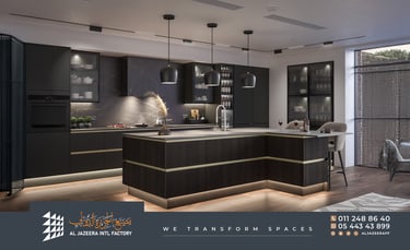 Al Jazeera International Riyadh designs modern, functional kitchen furniture. Our durable and stylish solutions bring efficiency and elegance to your kitchen spaces.