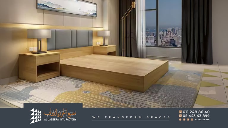 At Al Jazeera International in Riyadh, we design premium hotel furniture with a focus on elegance, durability, and functionality. From luxury bedrooms to stylish lobby and dining furniture, our pieces enhance spaces with modern craftsmanship.